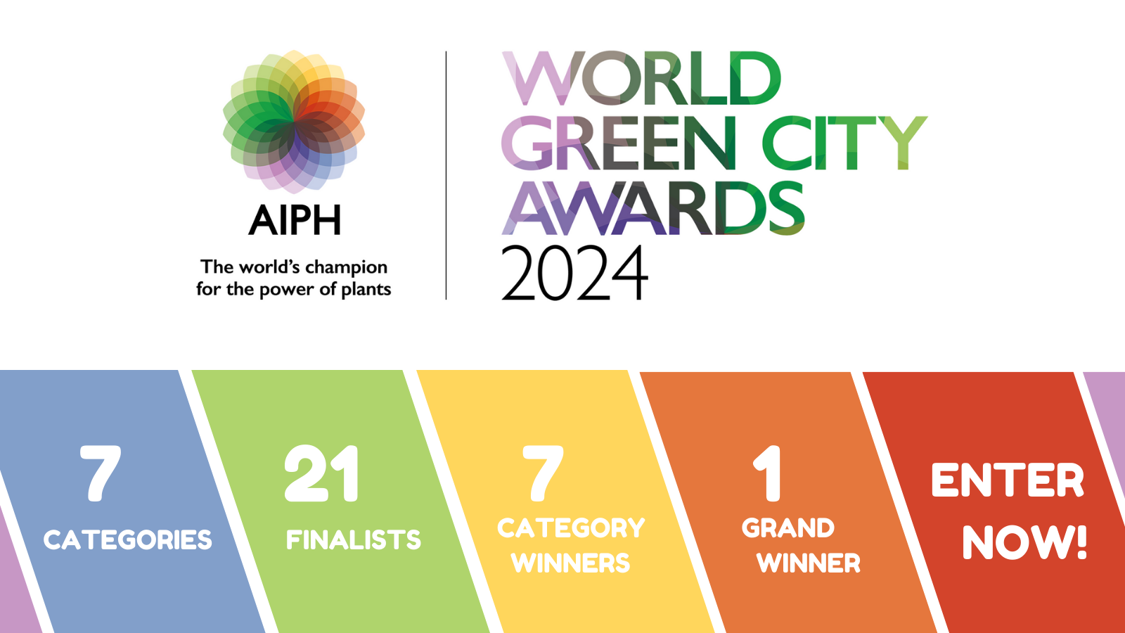 Building on the impressive global reach, success, and legacy of the inaugural 2022 edition, All cities, large and small, are invited to showcase their ambitious actions fur urban nature by entering the 2024 edition. The 2024 edition of the AIPH World Green City Awards is offered in 7 categories, with 3 finalists in each category from which one category winner is selected, and with 1 Grand Winner selected from the 7 category winners.